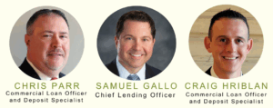 White Hall, WV –First Exchange Bank is pleased to announce the addition of three highly experienced banking professionals to its leadership and commercial banking division, Samuel Gallo, Chris Parr, and Craig Hriblan. Together, these new hires bring a combined 68 years of banking experience to First Exchange Bank, strengthening the